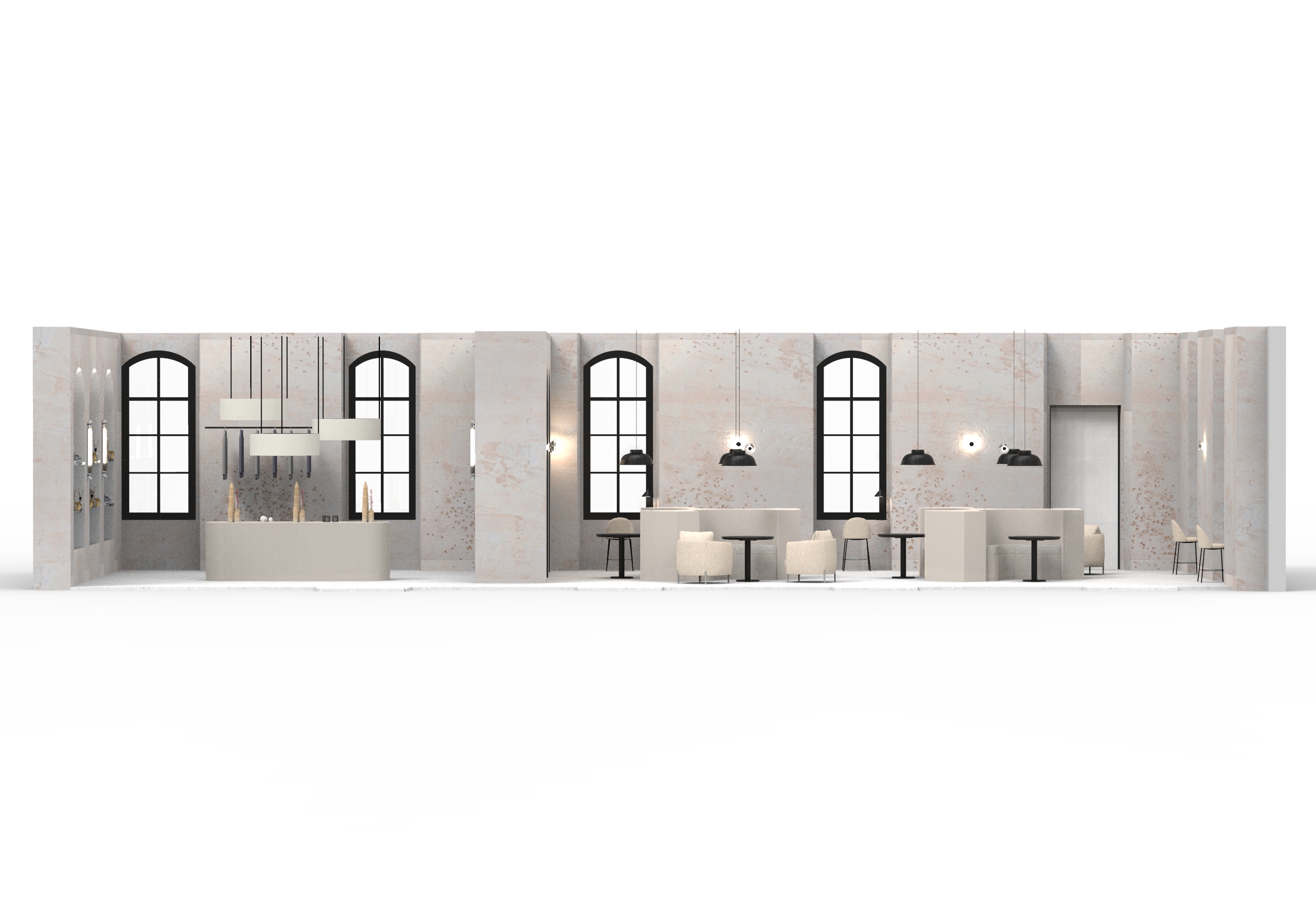 Un luminaire a été créé pour cet hôtel et est conçu pour offrir des effets de réfraction de la lumière à travers le cristal brut, tout en permettant une personnalisation de l’éclairage.