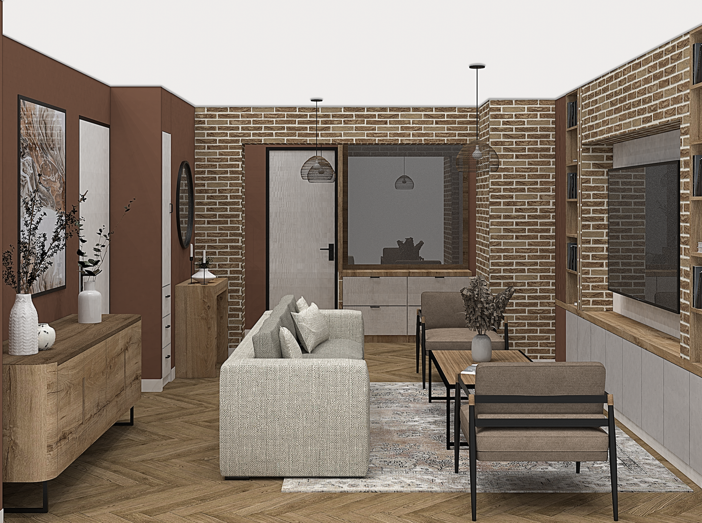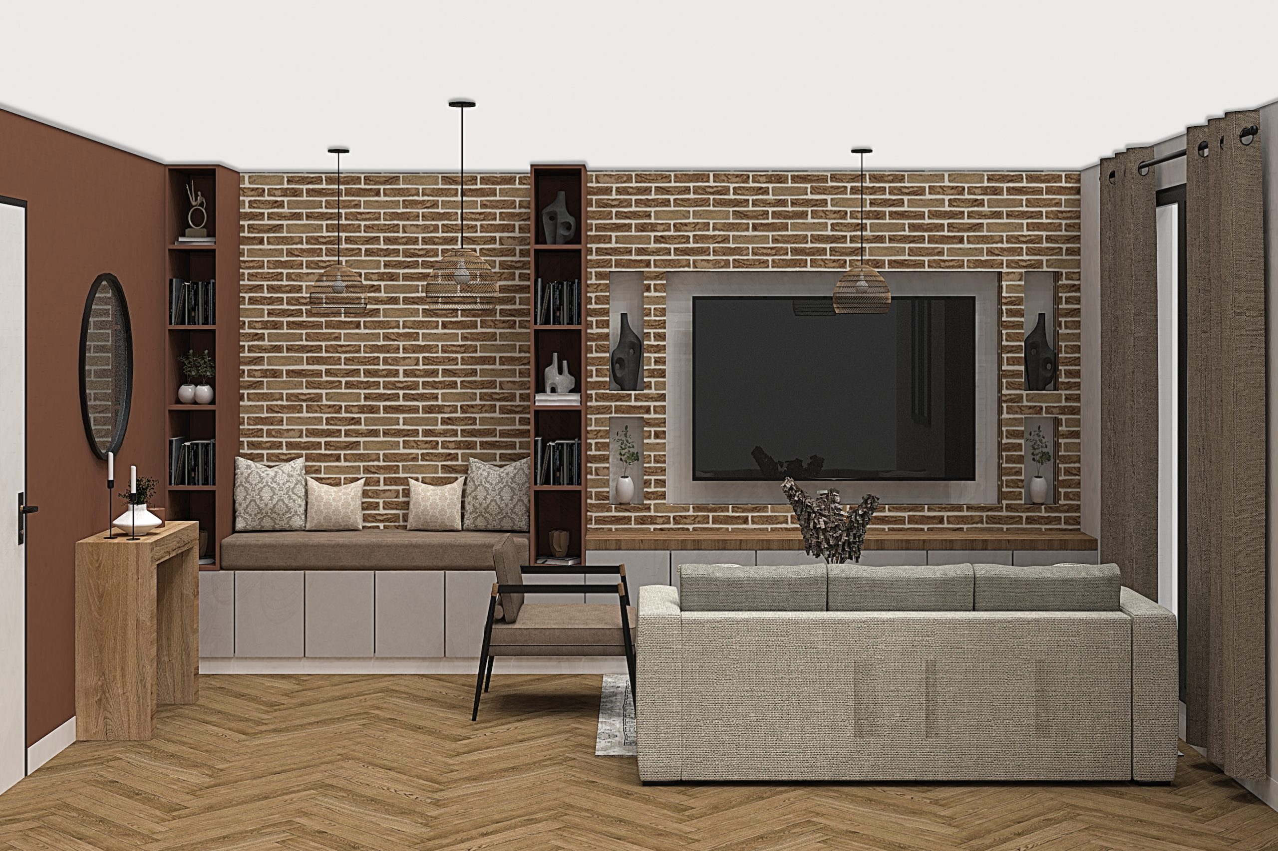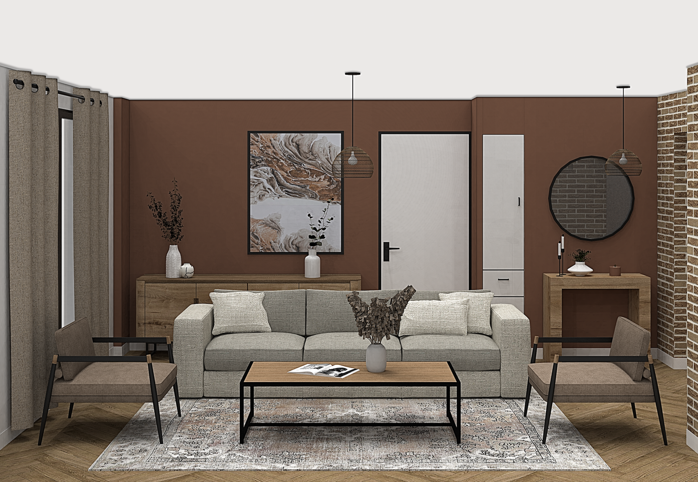 Ce projet consiste en la rénovation d’un appartement ayant subi un dégât des eaux. L’intervention porte sur la chambre d’amis, la salle de bain et le salon, avec un travail approfondi sur la décoration et l’aménagement. Le client souhaite un style industriel très léger, associé à des couleurs chaudes comme le terracotta. L’objectif est de maximiser les rangements tout en conservant une ambiance épurée et chaleureuse. Le mobilier et les solutions d’agencement ont été pensés pour offrir une flexibilité au quotidien, notamment avec une console extensible remplaçant la table de salle à manger classique.