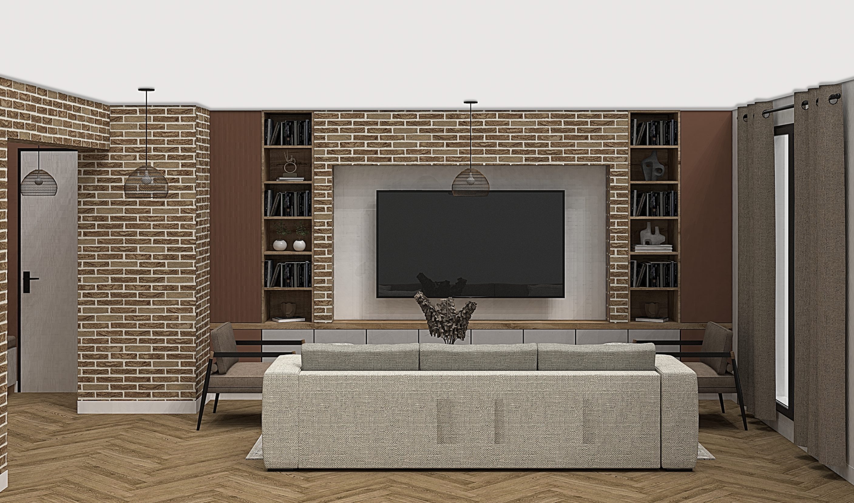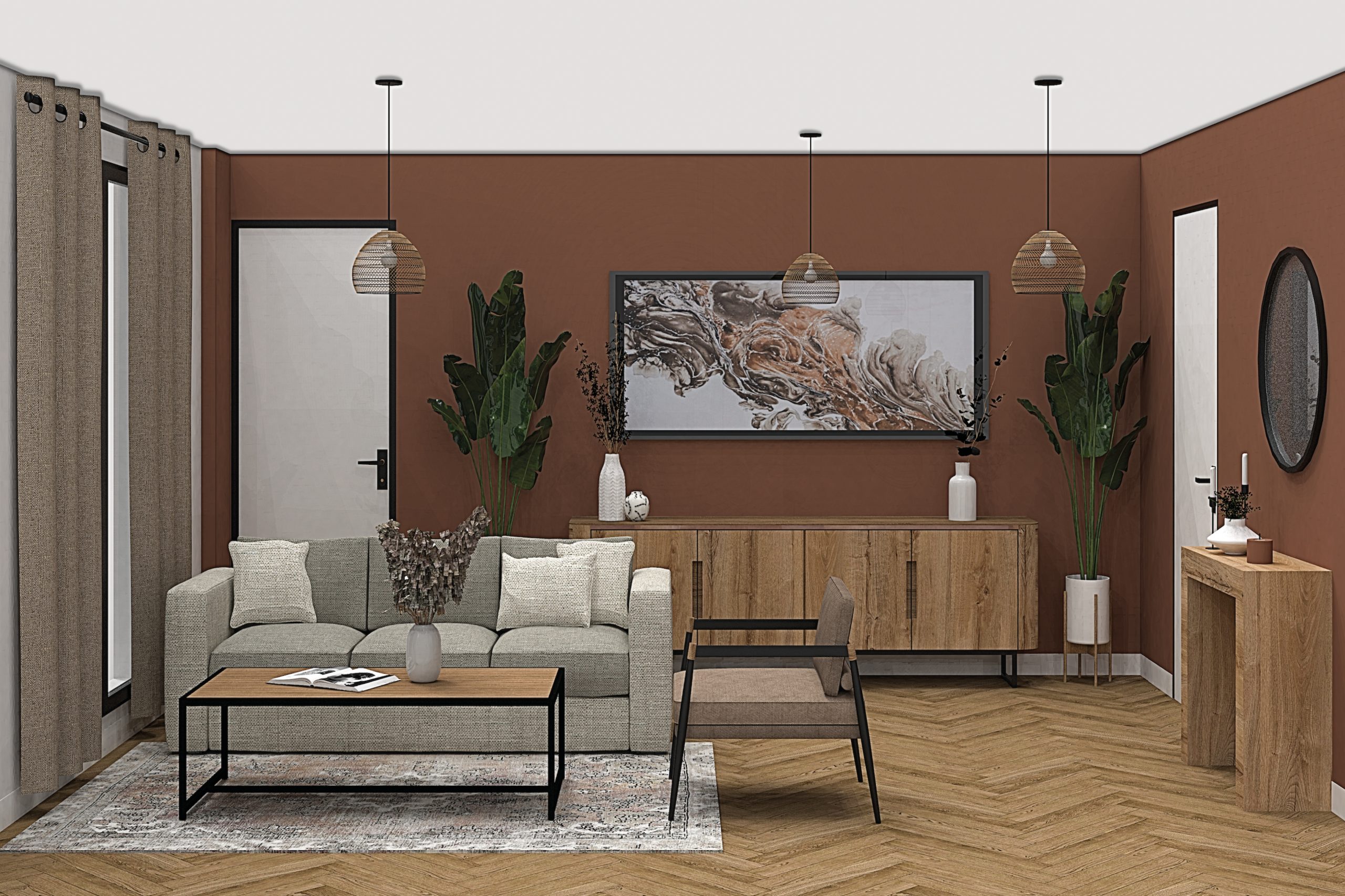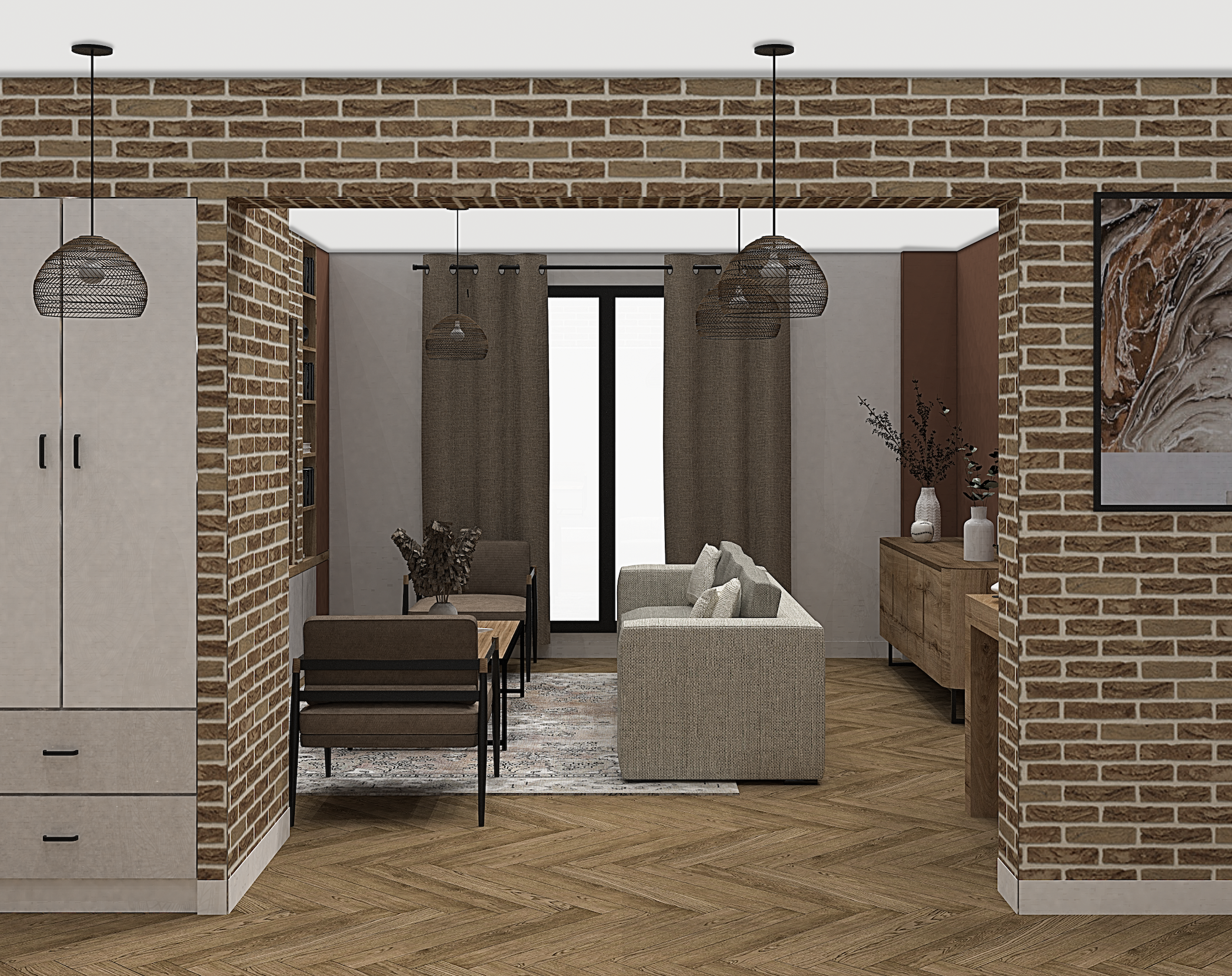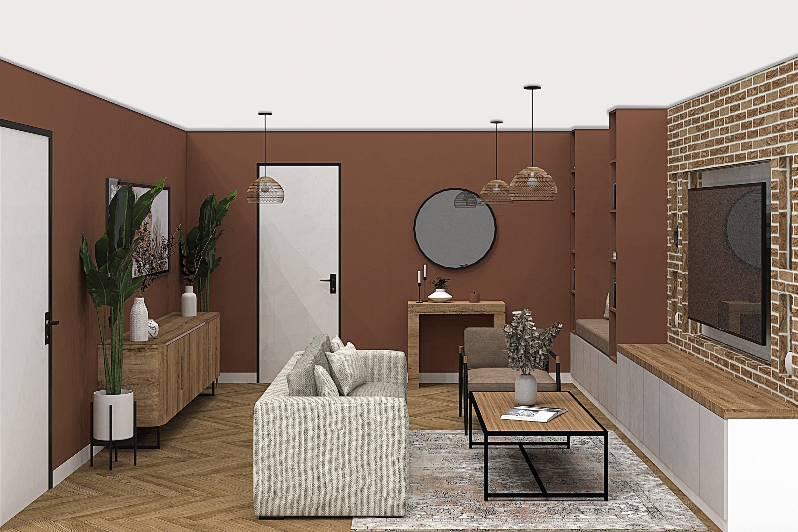 Ce projet consiste en la rénovation d’un appartement ayant subi un dégât des eaux. L’intervention porte sur la chambre d’amis, la salle de bain et le salon, avec un travail approfondi sur la décoration et l’aménagement. Le client souhaite un style industriel très léger, associé à des couleurs chaudes comme le terracotta. L’objectif est de maximiser les rangements tout en conservant une ambiance épurée et chaleureuse. Le mobilier et les solutions d’agencement ont été pensés pour offrir une flexibilité au quotidien, notamment avec une console extensible remplaçant la table de salle à manger classique.