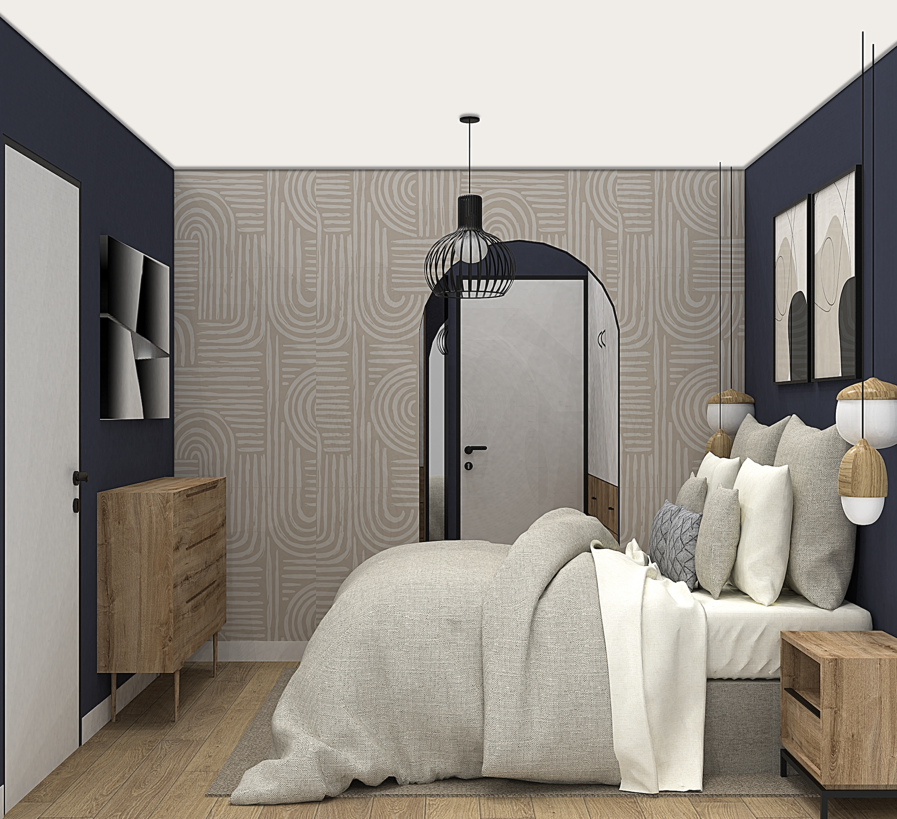 Des rendus 3D ont été réalisés pour permettre au client de mieux se projeter dans les deux options d’ambiance. Ce travail a facilité les choix de couleurs et d’agencements, assurant un résultat final en parfaite adéquation avec ses attentes.