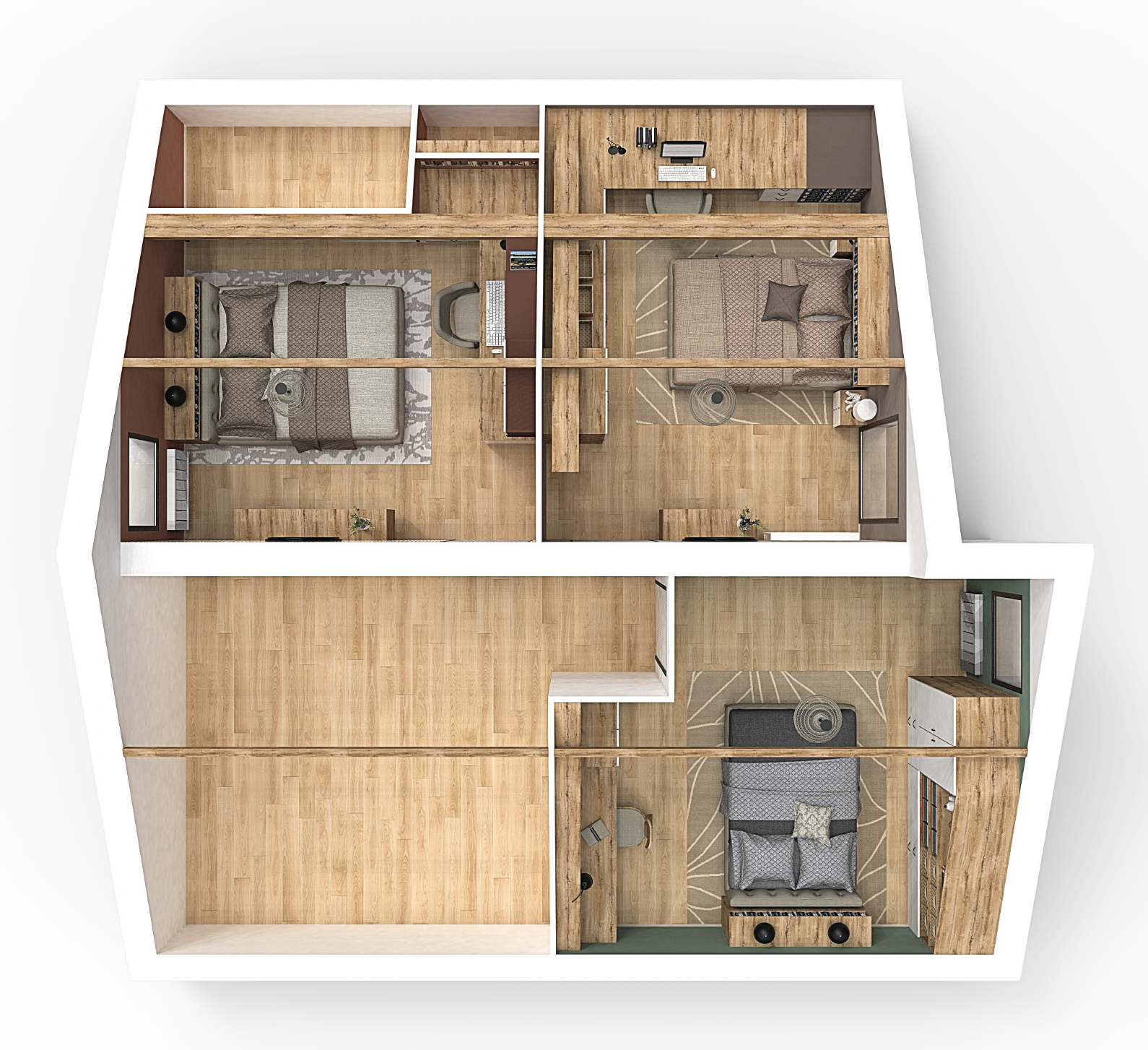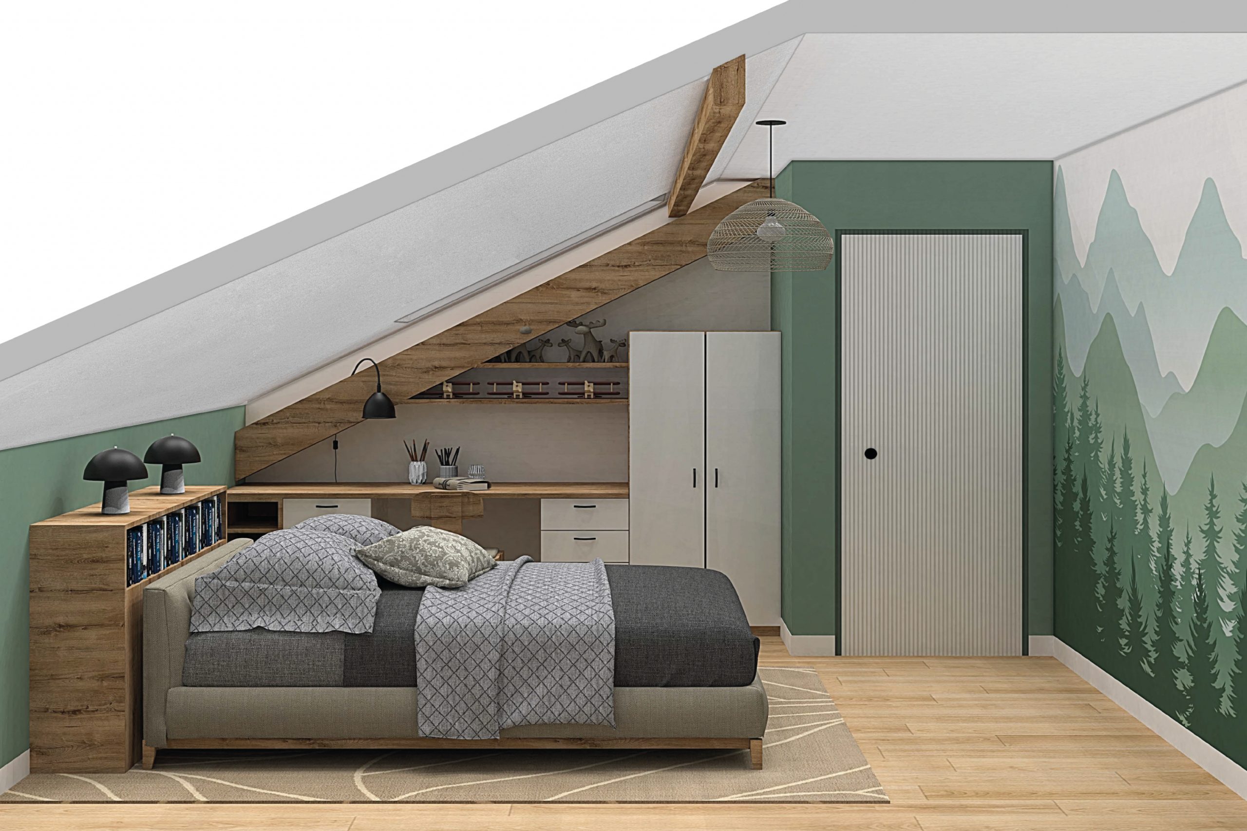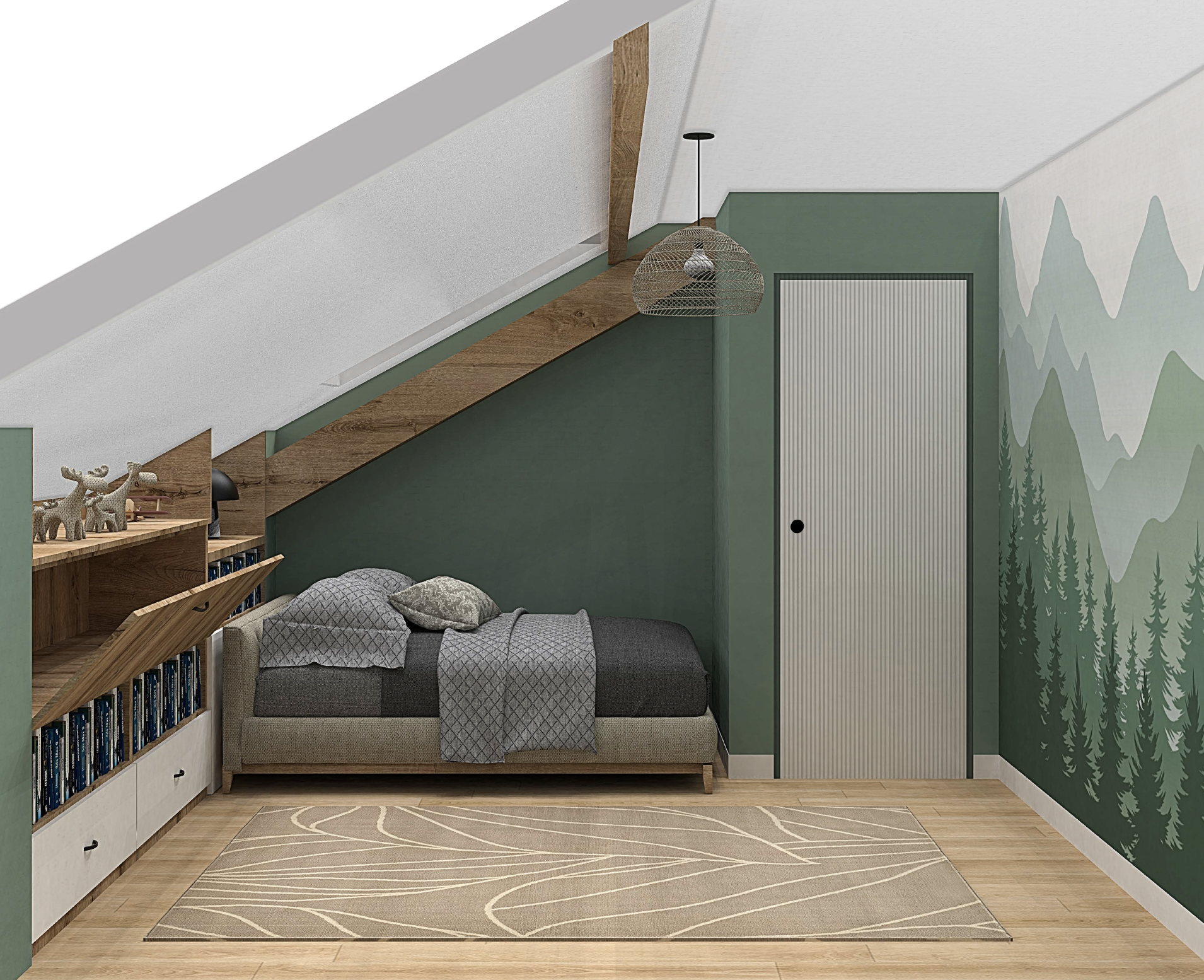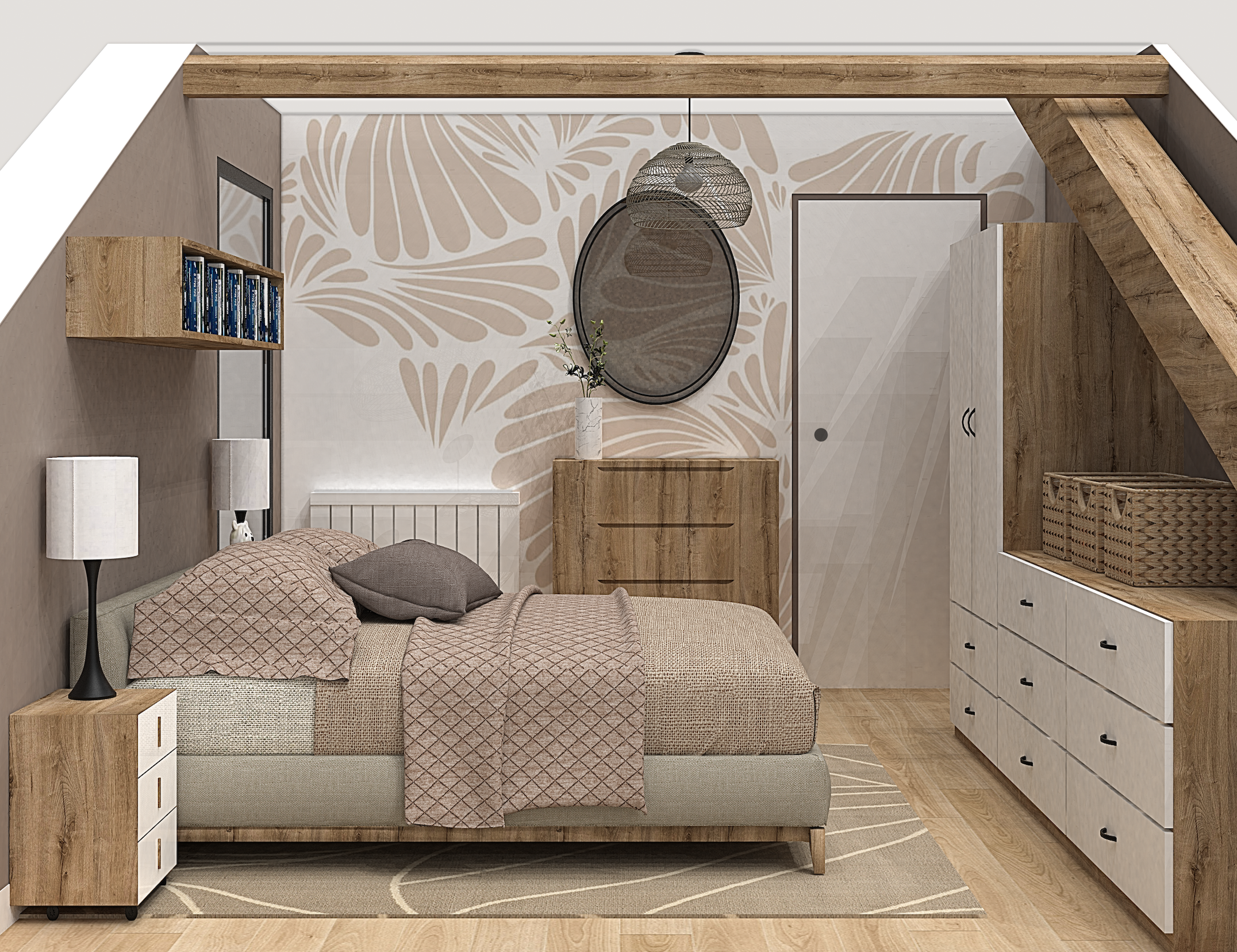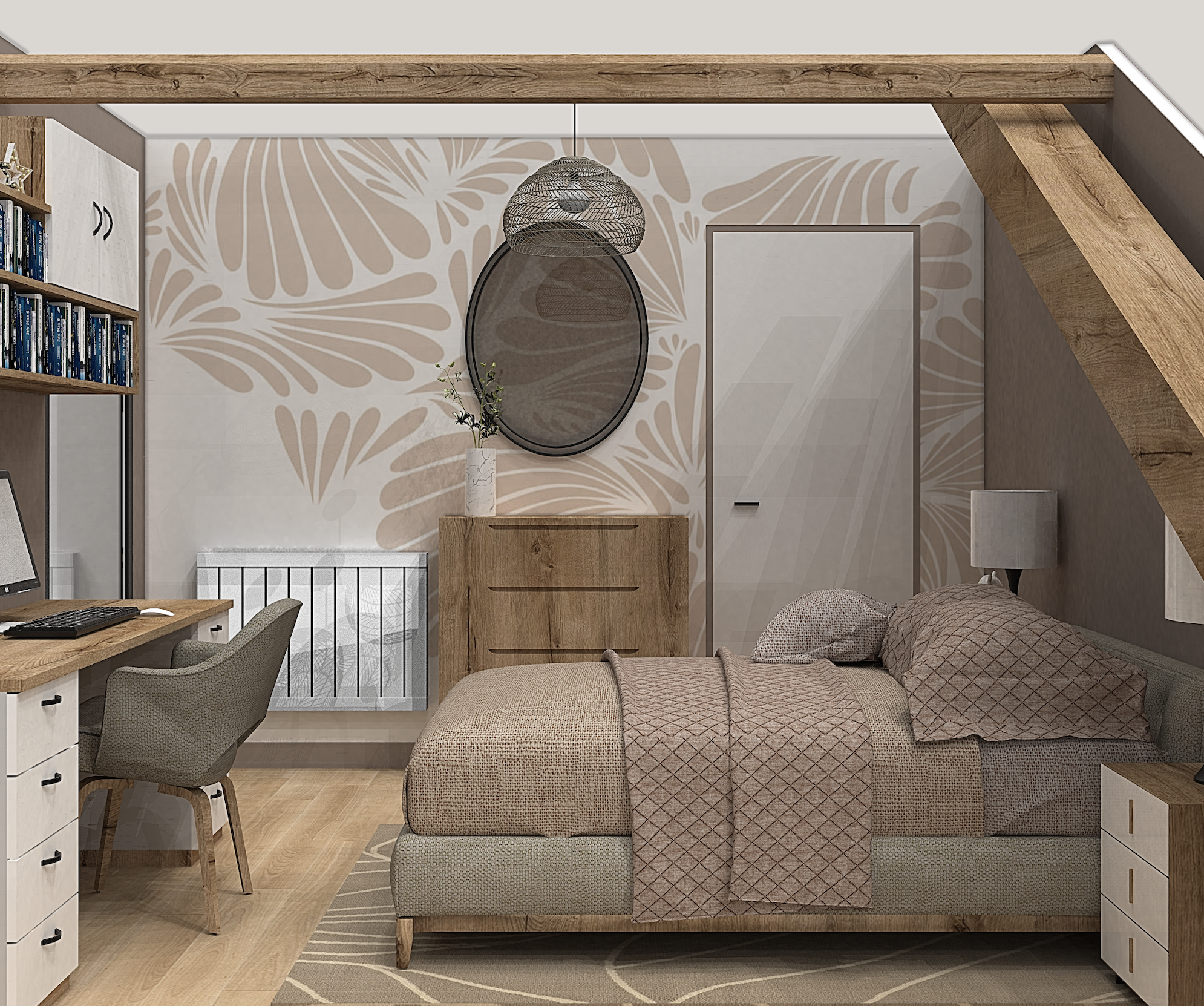 Ce projet s’articule autour de l’optimisation des espaces et du rangement, en tenant compte des contraintes architecturales (toitures sous pente, radiateurs existants) et de l’évolution des enfants. L’objectif était de créer des chambres durables, évolutives et fonctionnelles, tout en conservant une esthétique épurée. Deux propositions d’agencement ont été développées pour chaque pièce, permettant aux clients de choisir l’implantation la plus adaptée à leur mode de vie. L’accent a été mis sur un mobilier sur-mesure et un agencement fluide pour garantir un confort optimal et un usage pratique au quotidien.